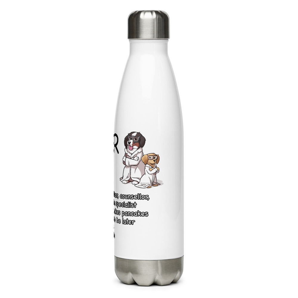 This 17-ounce, double-walled stainless steel water bottle is perfect for your daily outings. It will keep your drink of choice hot or cold for hours. It also features an odor- and leak-proof cap. Throw it in your car's cup holder on your way to work, take it with you on hikes, or toss it in your bag for any time you get thirsty.