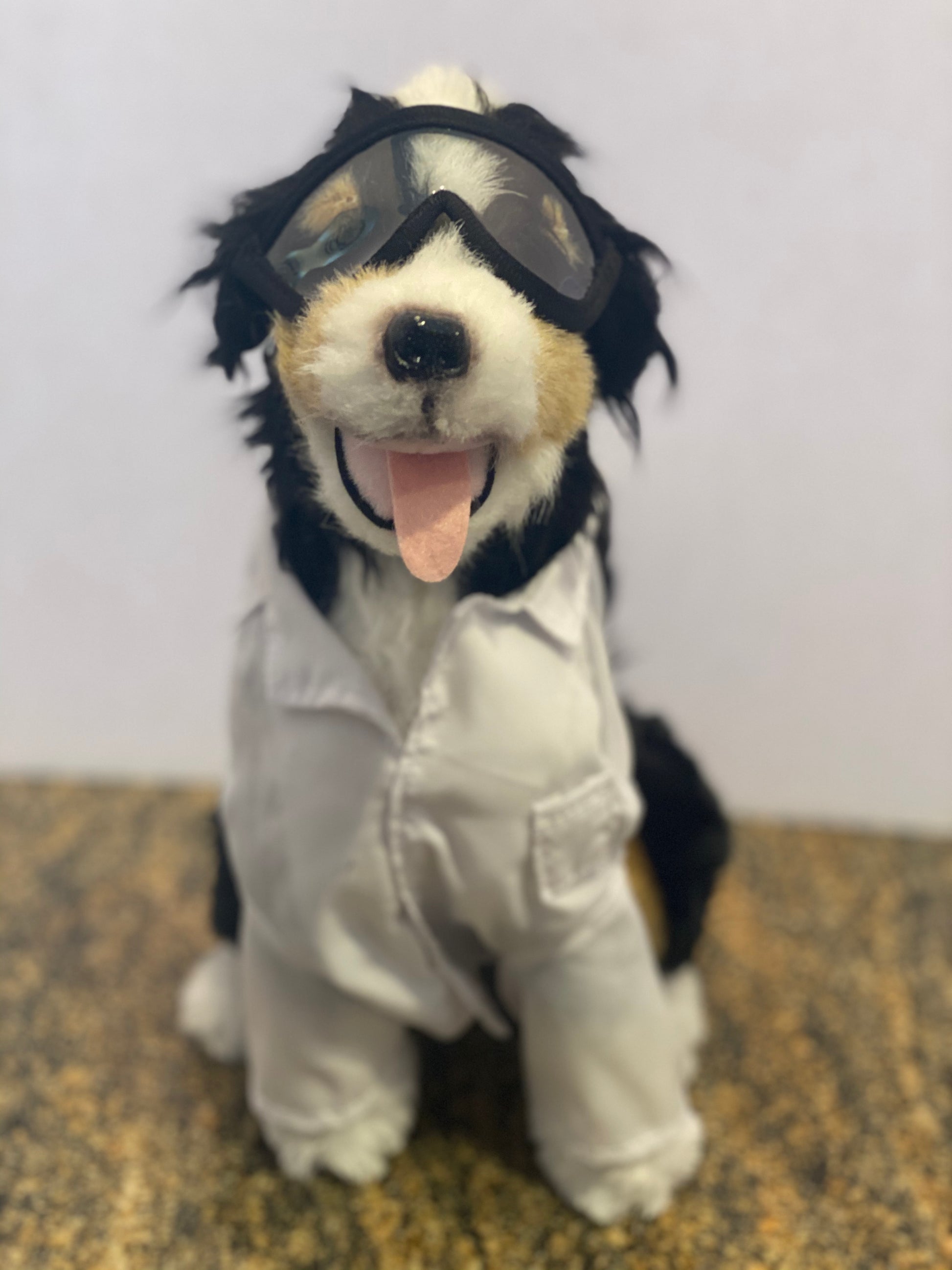 The lab coat had tiny snap buttons and a real pocket! Underneath the Lab Coat (yes you can take it on and off him!) he is his super fluff-monster self.