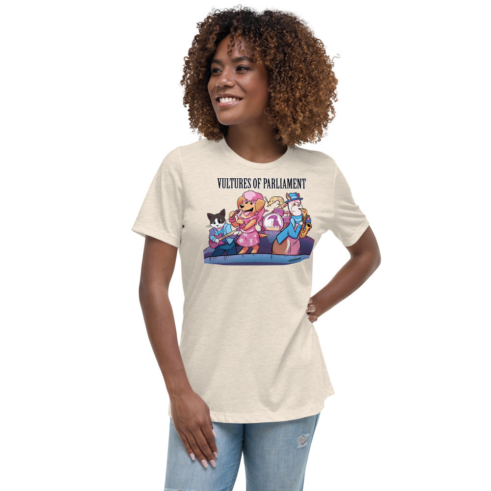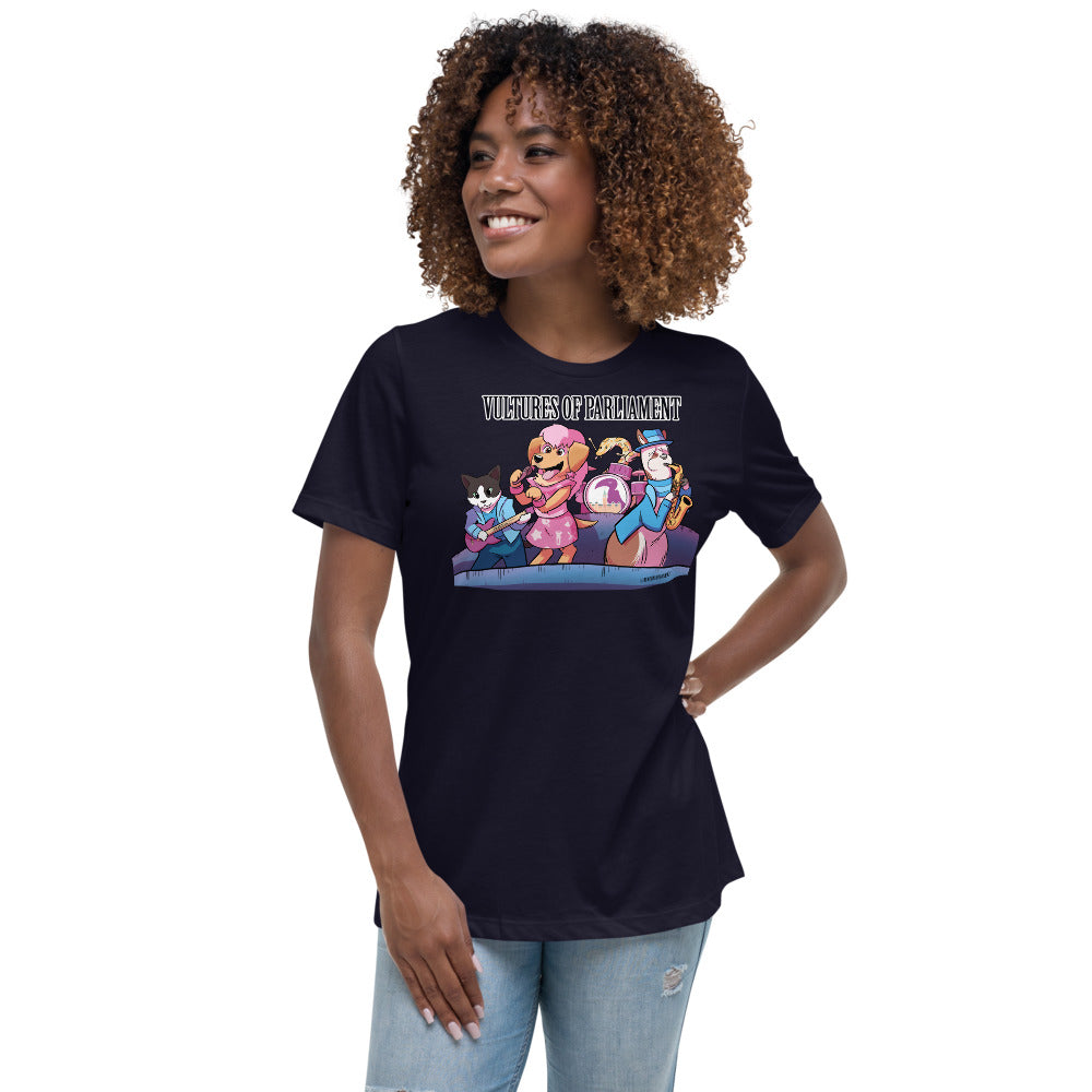 Women's Relaxed T-Shirt- Vultures of Parliament Band with Tour Locations on the Back